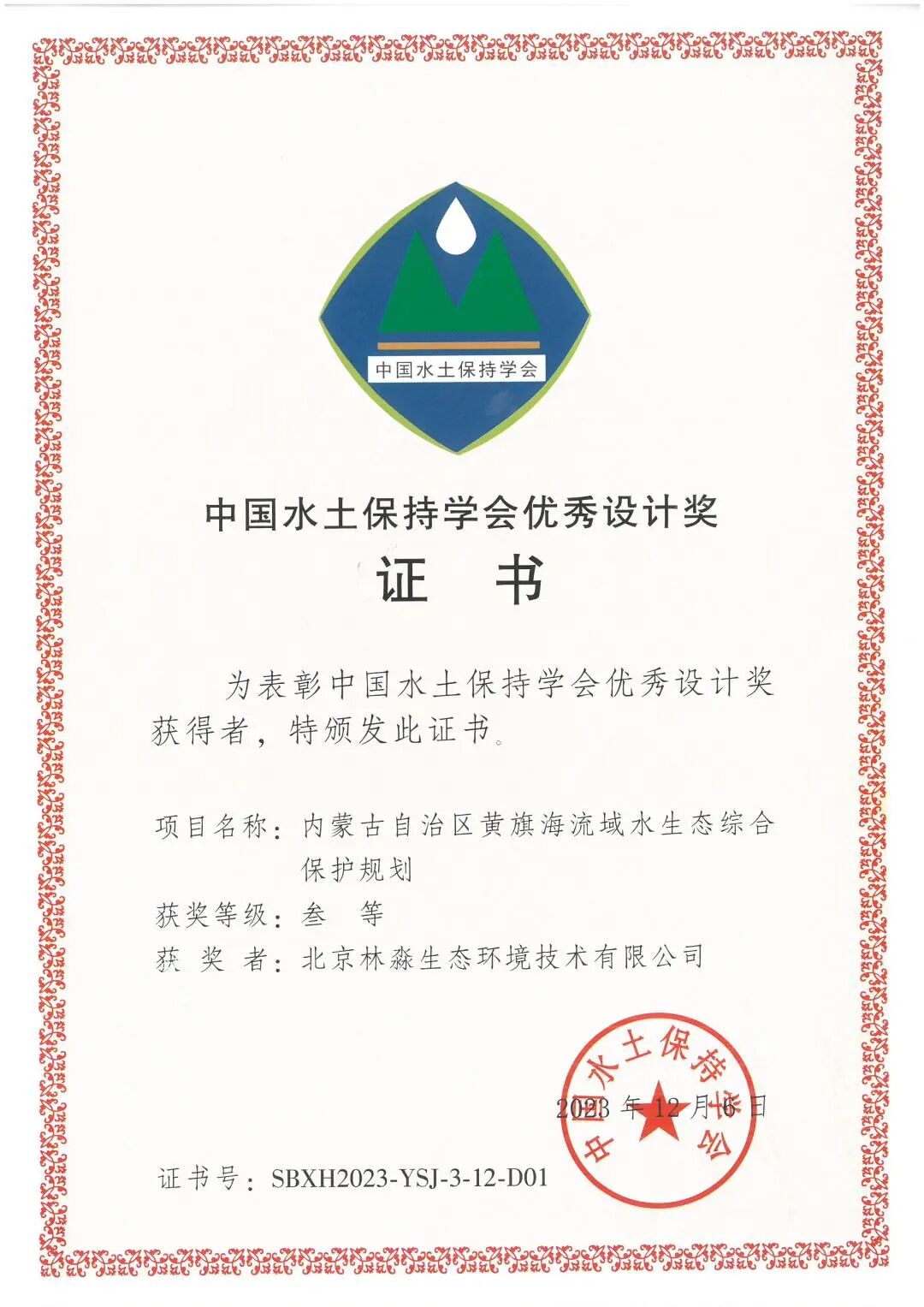 2023年12月6日,第四届中国水土保持学会优秀设计奖颁奖典礼在福州隆重举行。在众多优秀规划设计项目中,我司凭借《内蒙古自治区黄旗海流域水生态综合保护规划》项目,荣获了本届优秀设计三等奖,充分体现了我司在水土保持领域的技术实力。